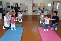 今月の体操は跳び箱です。跳び箱から両足でジャンプ!!ポーズも上手に決まりました!